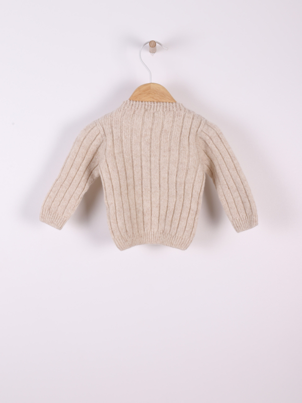 Een mooi ribgebreid truitje van Wedoble, gemaakt van een zachte wolmix. Het model heeft een ribgebreide structuur en een houten knoopsluiting op de schouder, waardoor het gemakkelijk aan en uit te trekken is. Een tijdloos kledingstuk dat zowel comfortabel als stijlvol is voor dagelijks gebruik.