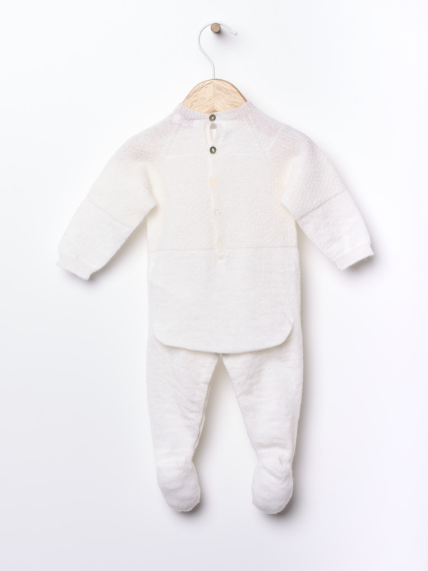 Dit gebreide boxpakje van Wedoble is een echte must-have voor je baby. Het pakje is gemaakt van zachte wolmix, waardoor het heerlijk warm en comfortabel zit. Dankzij de lange mouwen en voetjes blijft je kindje volledig beschermd tegen de kou. Het eenvoudige, tijdloze ontwerp met een subtiel knoopdetail op de voorkant maakt dit pakje makkelijk te combineren met andere items.