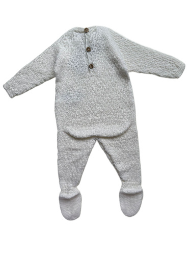 Dit gebreide boxpakje van Wedoble is een warme en comfortabele keuze voor je baby. Het pakje heeft een fijn kabeldetail aan de voorzijde en lange mouwen, waardoor het niet alleen stijlvol maar ook praktisch is voor de koudere dagen. De voetjes zijn gesloten, zodat je baby volledig bedekt en lekker warm blijft. Dankzij de handige knoopsluiting is het aan- en uitkleden eenvoudig.