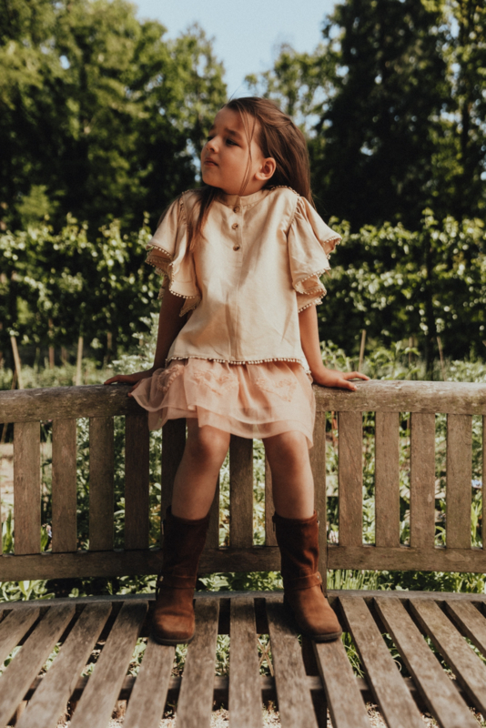 Meisjes blouse elegant Deze verfijnde blouse met ruffle-mouwen heeft een zachte, romantische uitstraling. De lichte crèmetint en subtiele randdetails geven het item een tijdloze en elegante look. Gemaakt van een comfortabele, luchtige stof die mooi valt en prettig aanvoelt op de huid. Perfect voor zowel alledaagse momenten als speciale gelegenheden. Luchtige stof voor een fijn comfort Grote ruffle mouwen echt een eyecatcher Verkrijgbaar in creme/peach Voor de fashionista’s onder ons