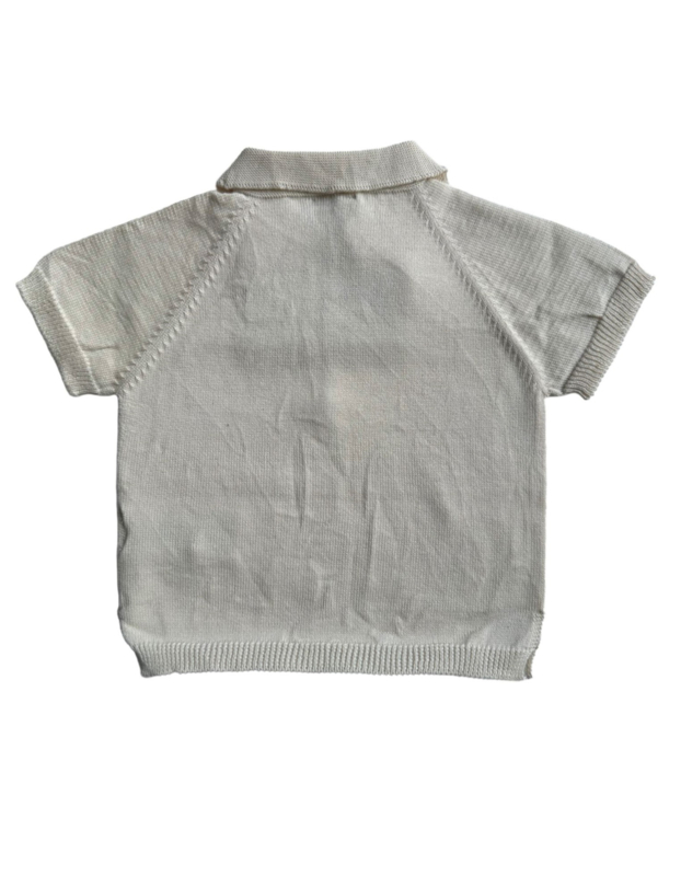 Mooi gebreid polo truitje voor de jongens van het merk Wedoble. gebreid van zacht katoen. De polotrui sluit aan de voorkant met knoopjes. Leuk voor de zomer, een item wat niet kan ontbreken in de kledingkast van je kleintje. Verkrijgbaar in de kleuren: off white, blauw en zand. Dit Wedoble polo truitje is verkrijgbaar vanaf 12 maanden t/m 4 jaar.
